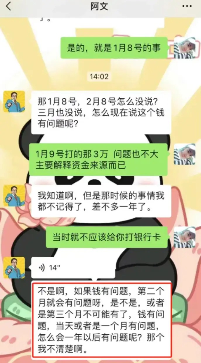 这种商家的套路就是,比如几大万的单子,本人先给你打个一部分款比如4000,然后告诉你自己账户限额了,用家人、老婆的账户打给你,因为你已经收到了一笔资金,和他产生信任后,他打给你的是赌资(黑资),现在专案组介入,他也找各种方法推脱。