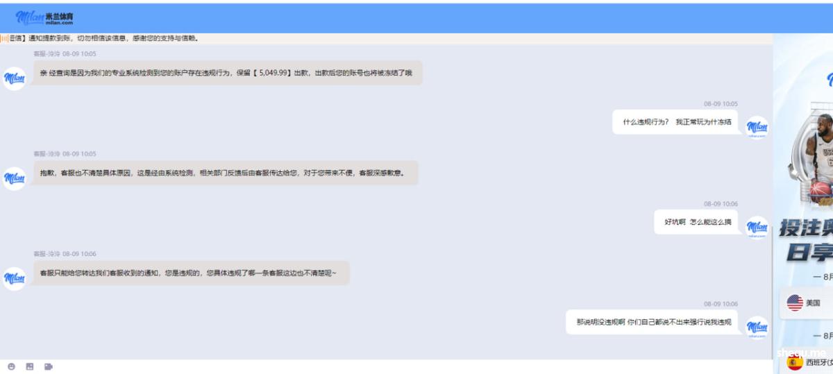 【曝光维权】 米兰体育 以“打水”为由拒绝提款20万,真实经历分享!