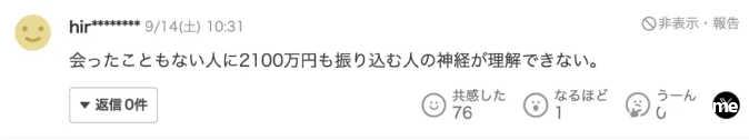 对此,日本网友深感无语,无法理解为什么会有人如此愚蠢,连对方一面都没见过,就拼命转账。
